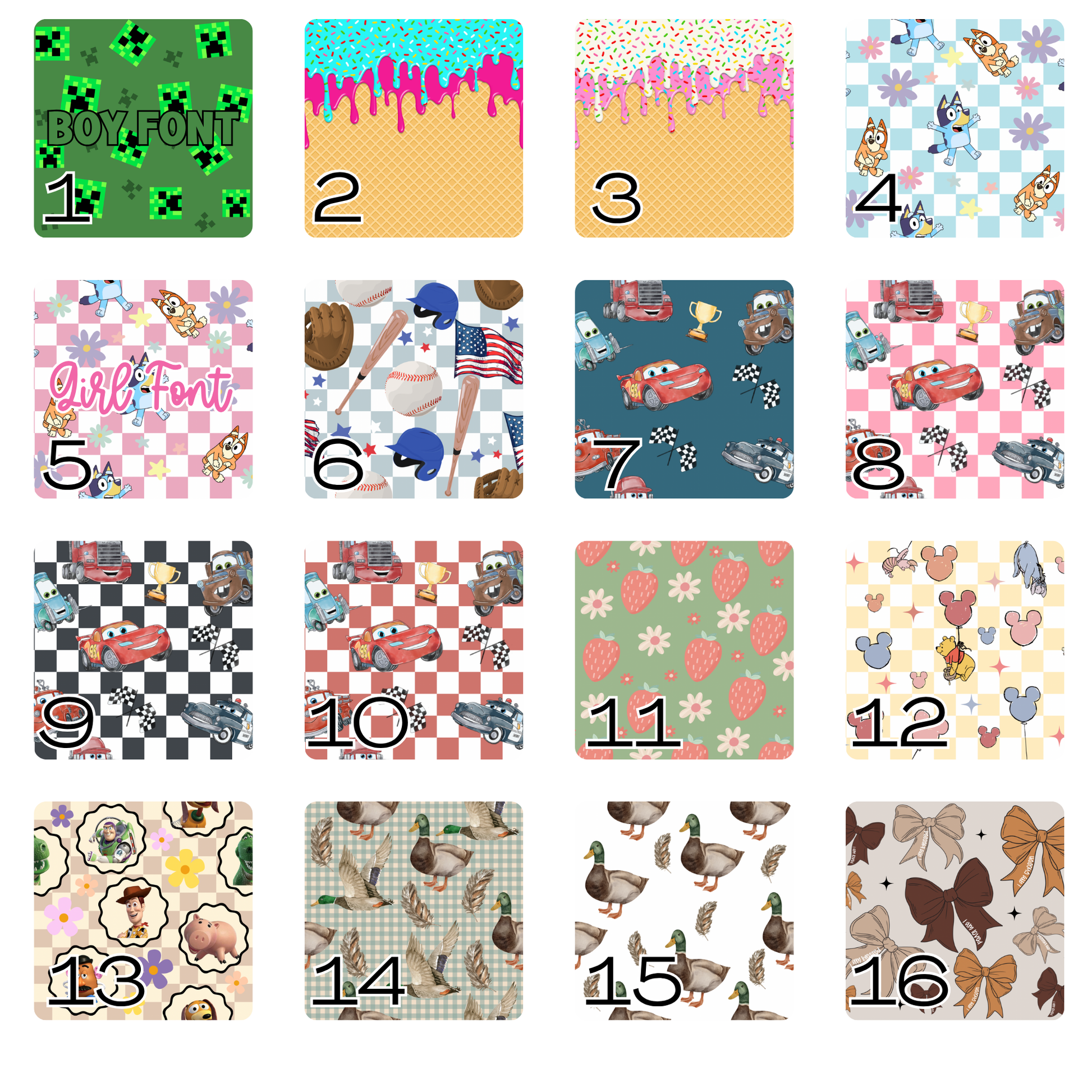 Please Note Design # In the Note Box Per Line as well as Font (Boy or Girl Font - see #1 for Boy Font and #5 for Girl Font - I will color coordinate the font)