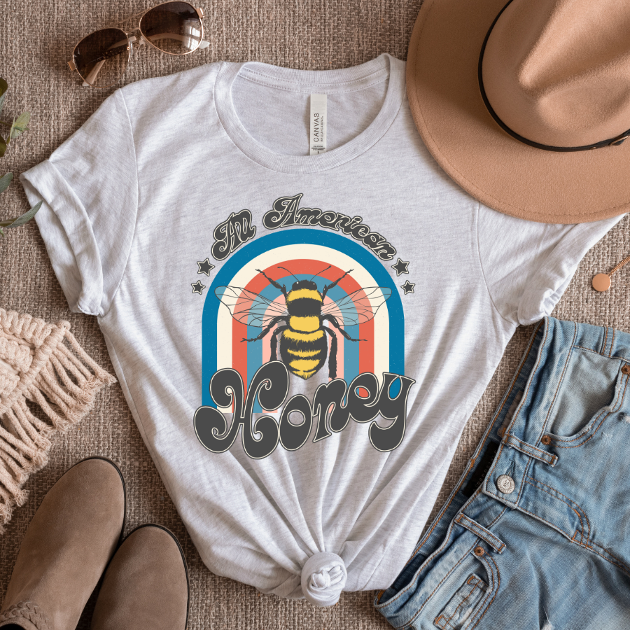 All American Honey Rainbow Bee Full Color DTF Transfer