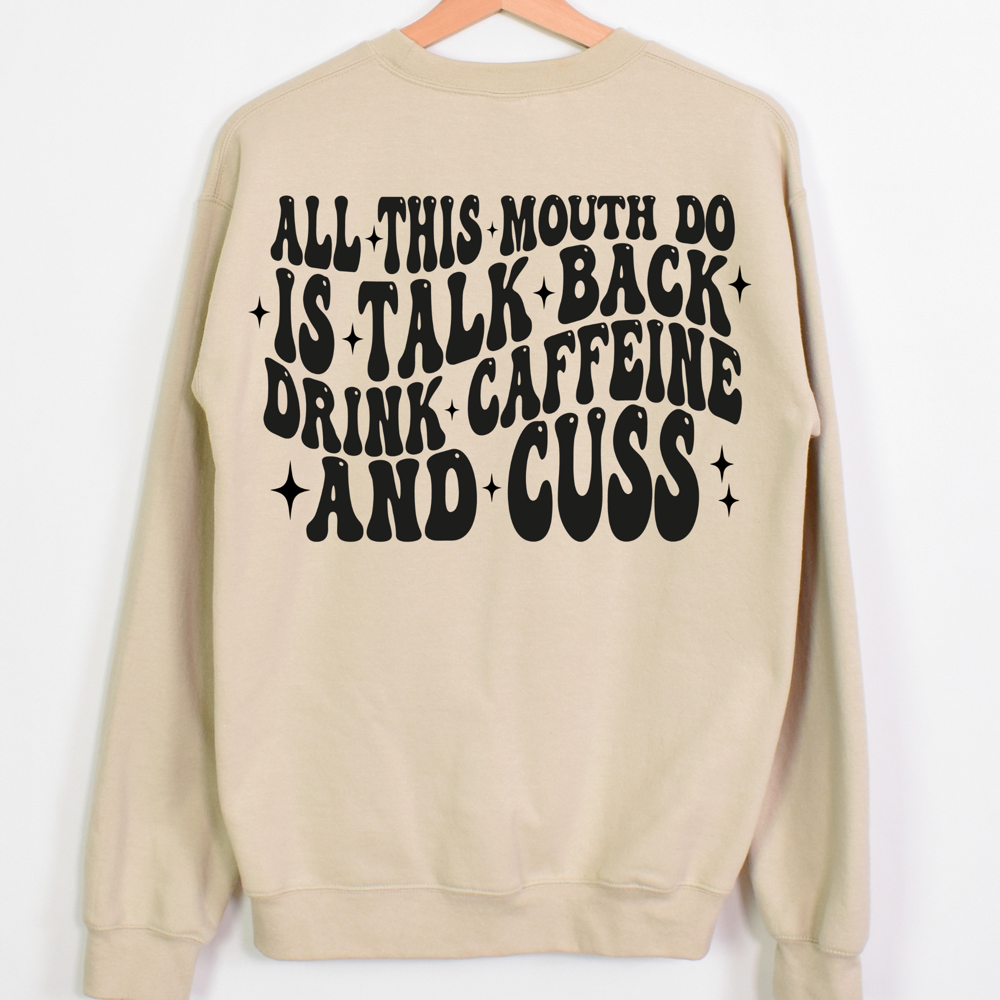 All This Mouth Does Is Talk Back Drink Caffeine And Cuss Full Color DTF Transfer