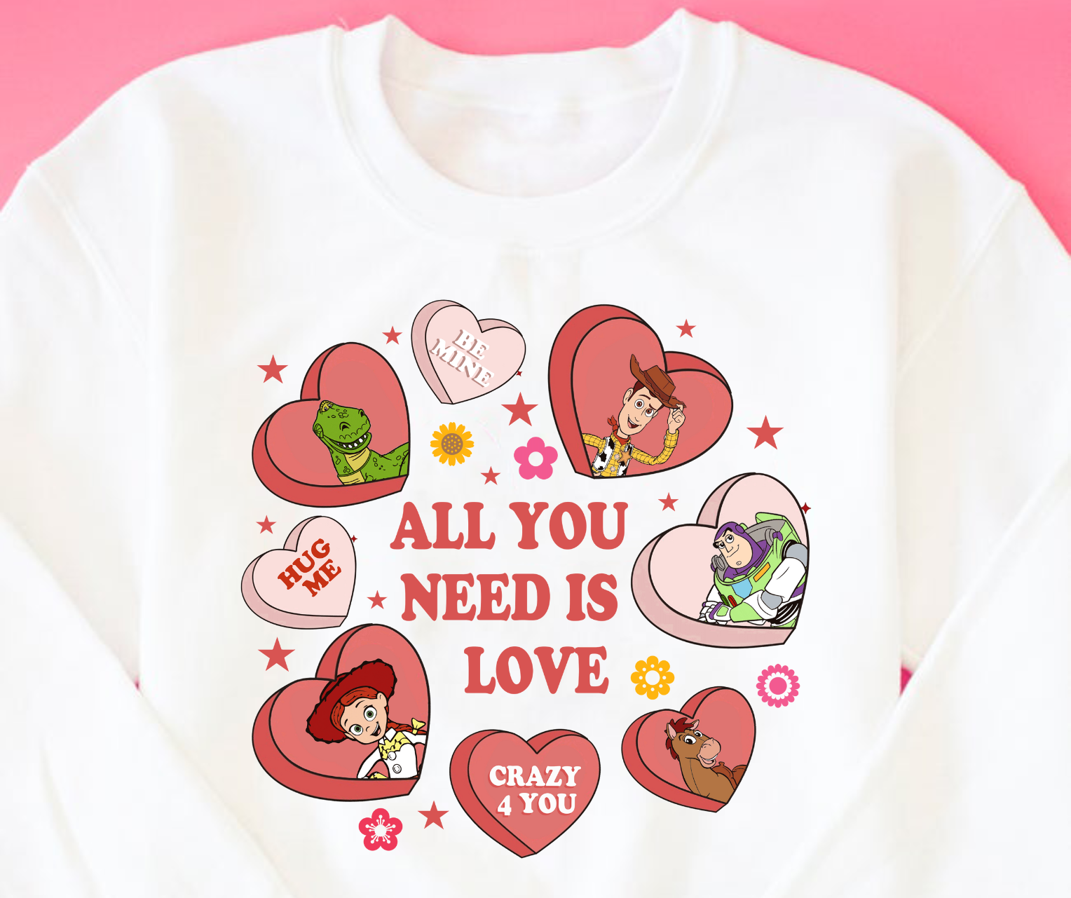 All You Need Is Love Toy Story Valentines Candy Hearts Full Color DTF Transfer