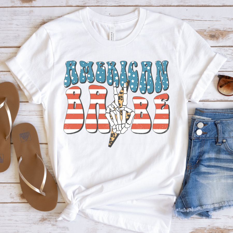 American Babe Leopard Lightening Bolt Skull Hand Full Color DTF Transfer
