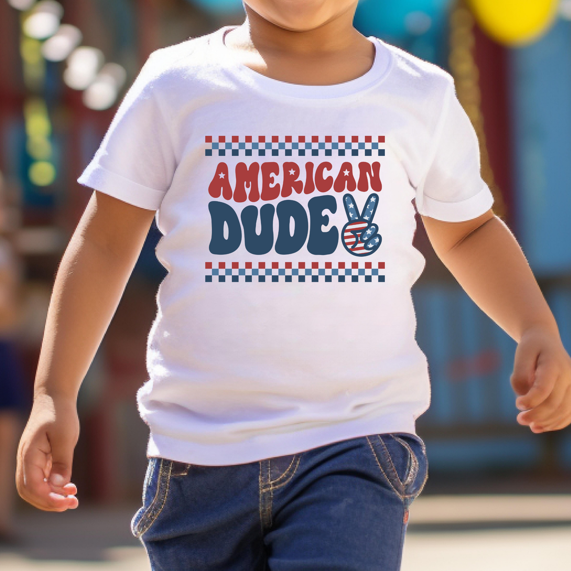 American Dude (Checkered Border) Full Color DTF Transfer