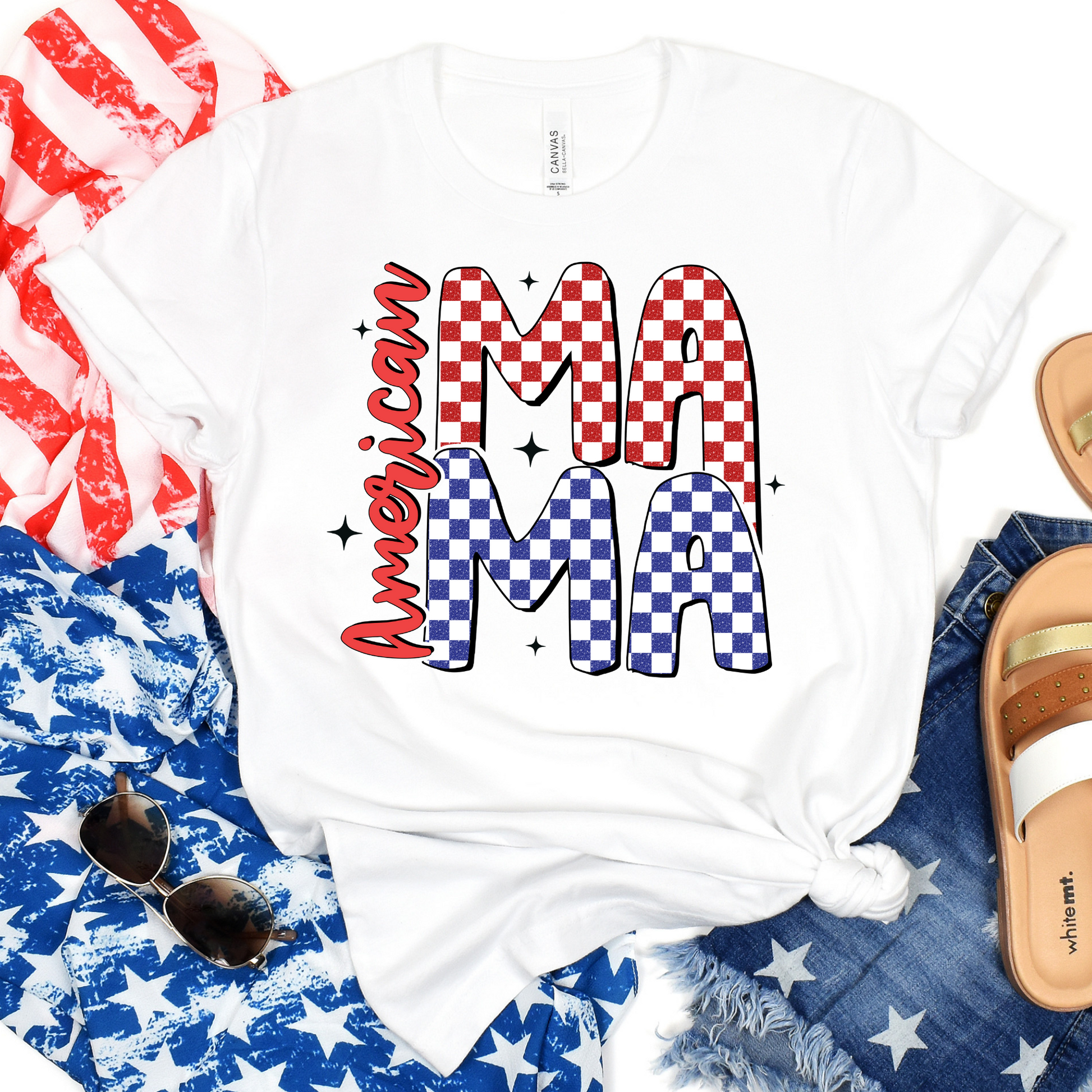 American Mama (Stacked Checkered) Full Color DTF Transfer