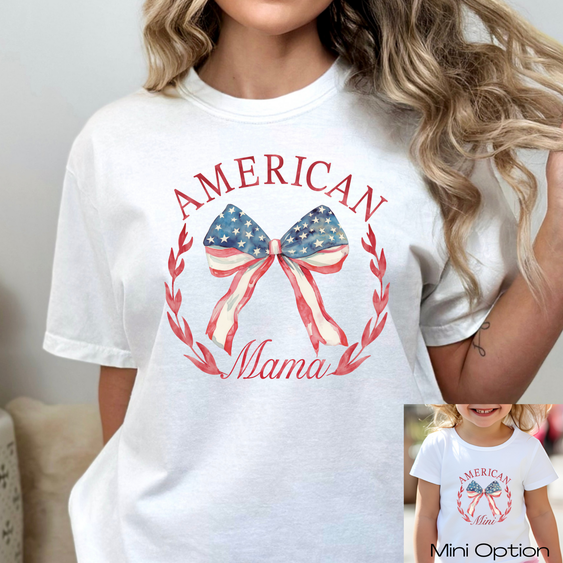 American Mama w/Flag Bow (Mini Option) Full Color DTF Transfer