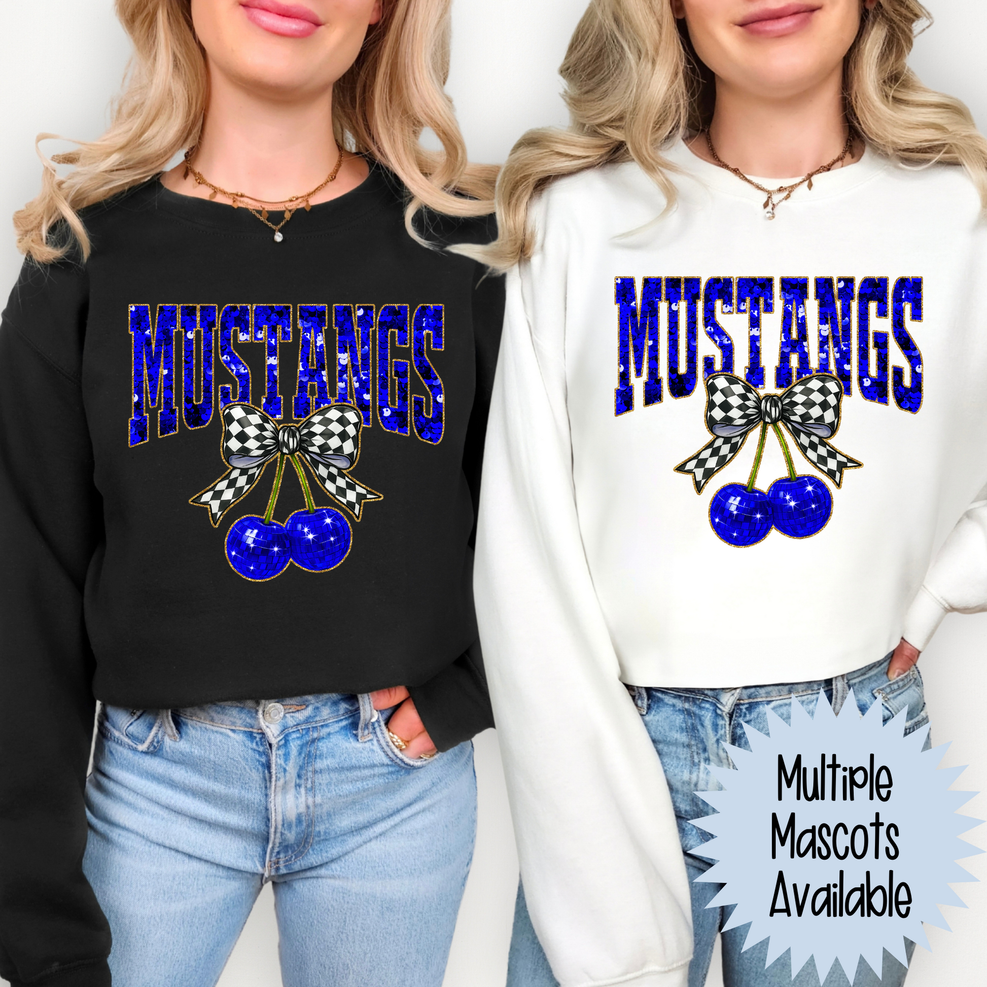 Blue Faux Sequin Cherries (MULTI MASCOT OPTIONS) Full Color DTF Transfer