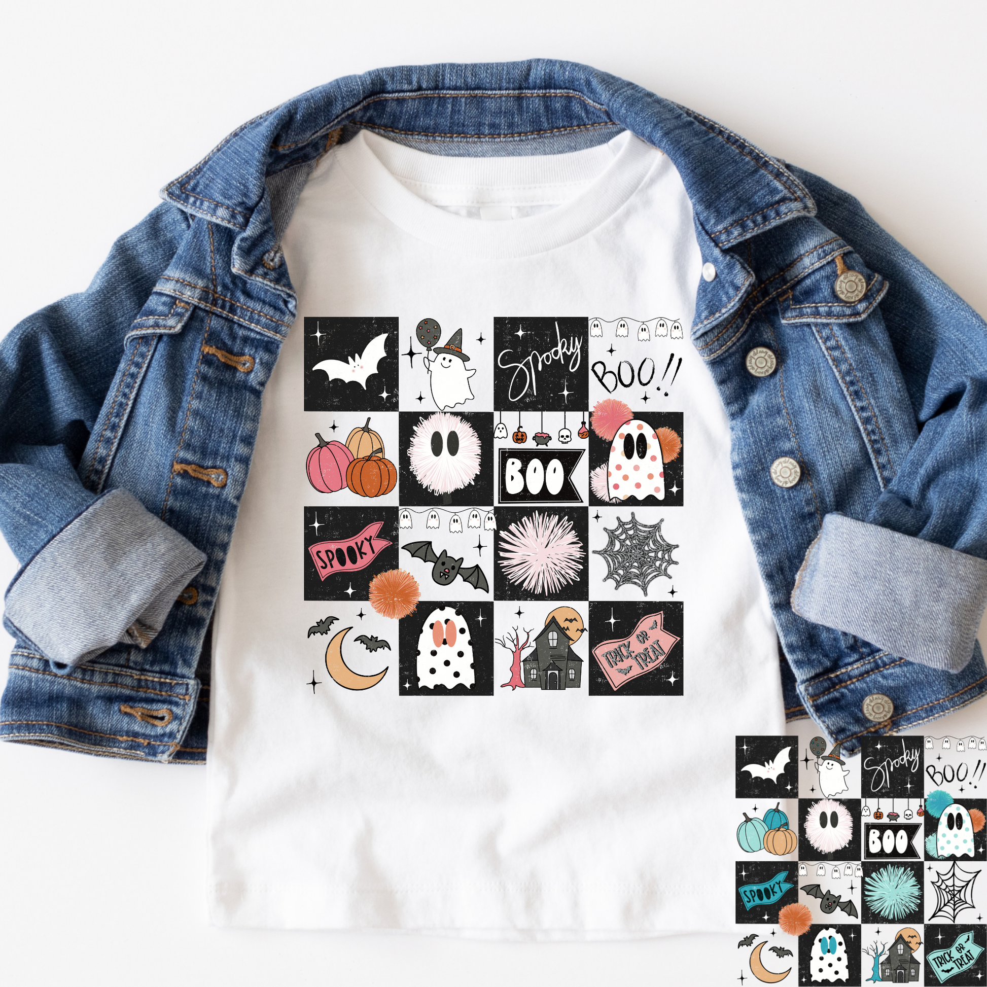 Checkered Halloween Icons Grid (Boy/Girl Options) Full Color DTF Transfer