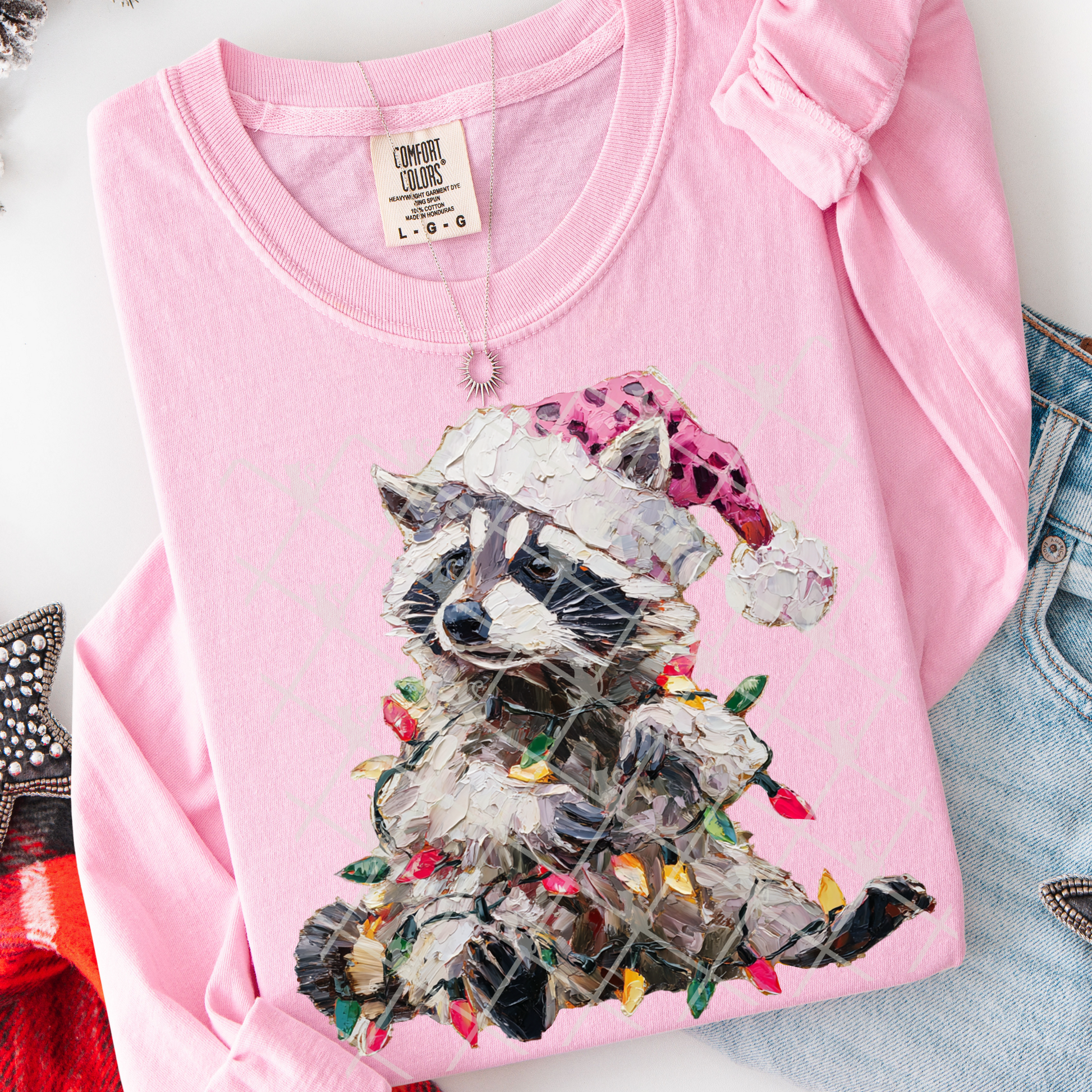 Christmas Raccoon (Faux Hand Painted) Full Color DTF Transfer