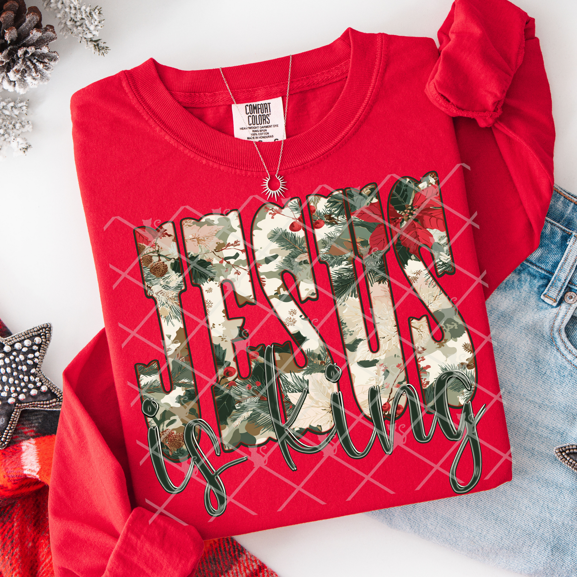Jesus is King (Christmas Camo) Full Color DTF Transfer