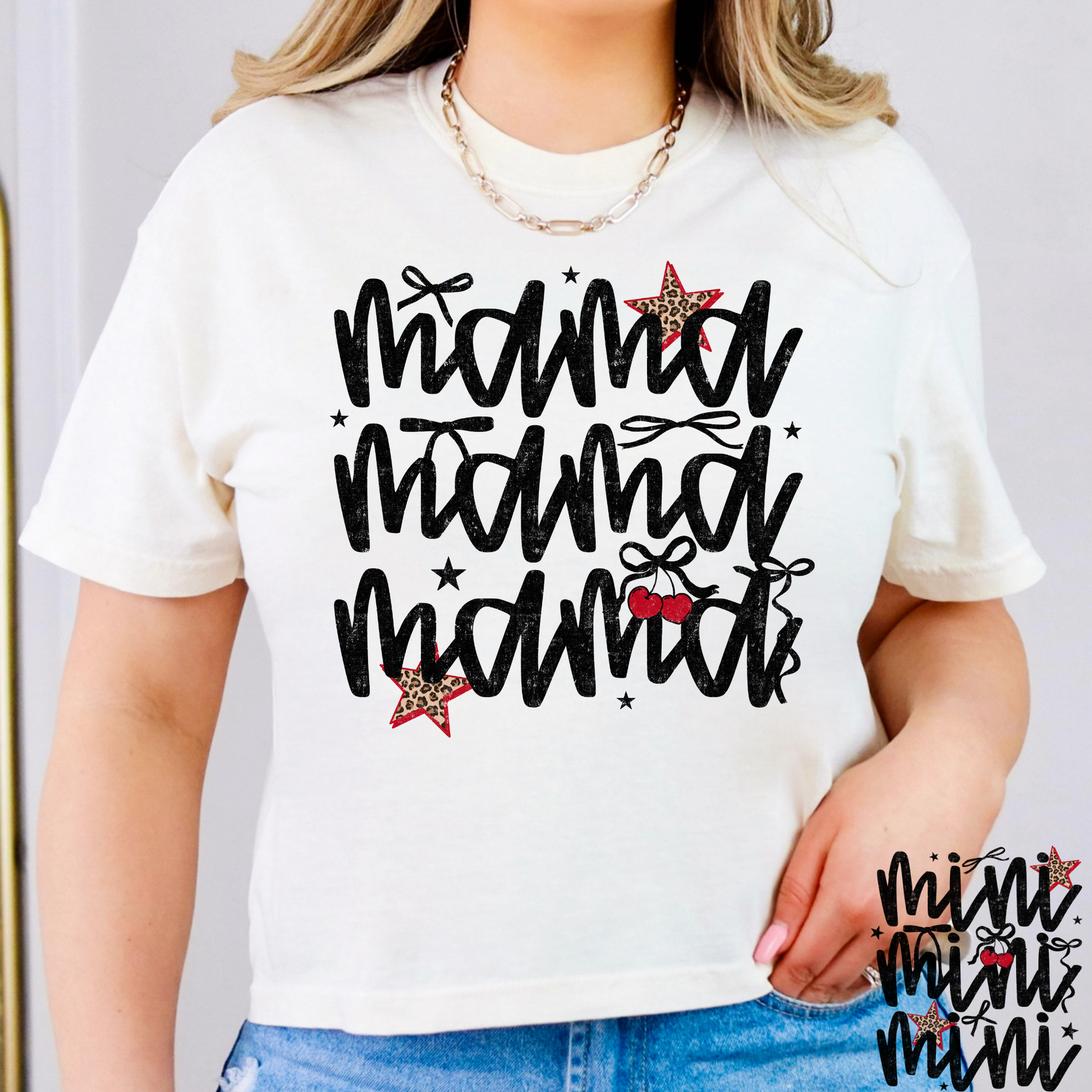 Mama Stacked w/Cherry/Stars (Mini Option) Full Color DTF Transfer