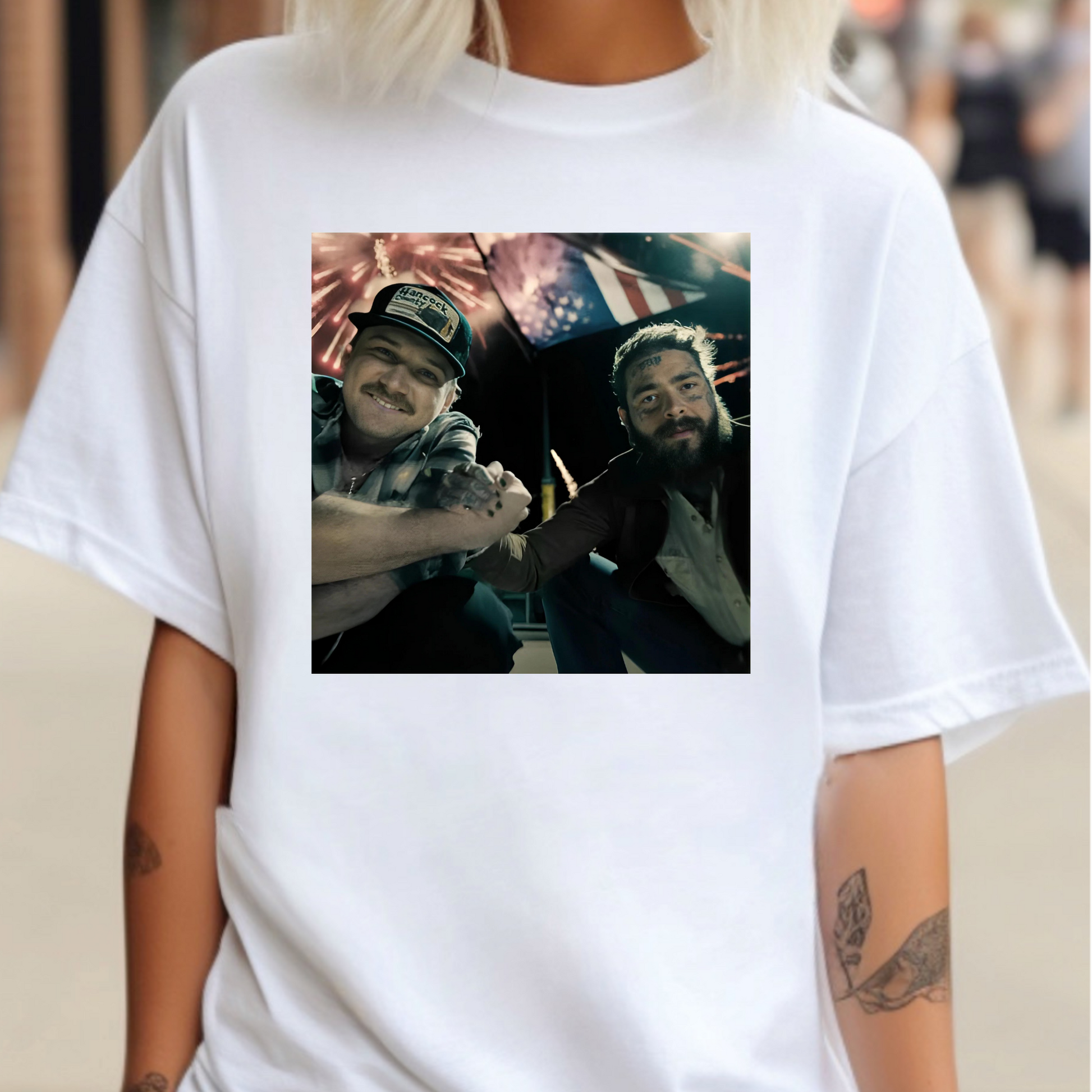 Morgan Wallen/Post Malone Picture (Flag/Firework Background) Full Color DTF Transfer