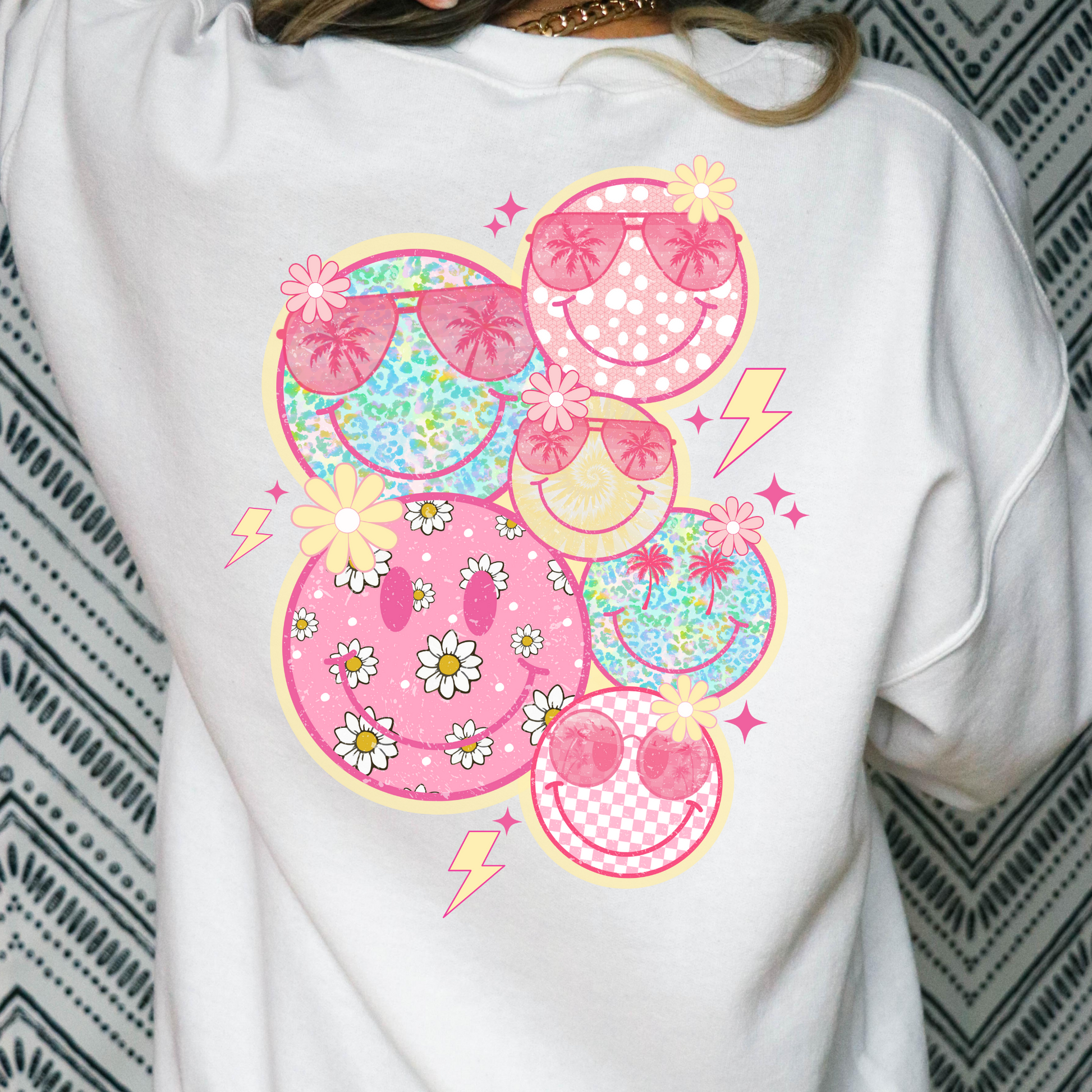 Multi Color Smiley Face Collage Full Color DTF Transfers