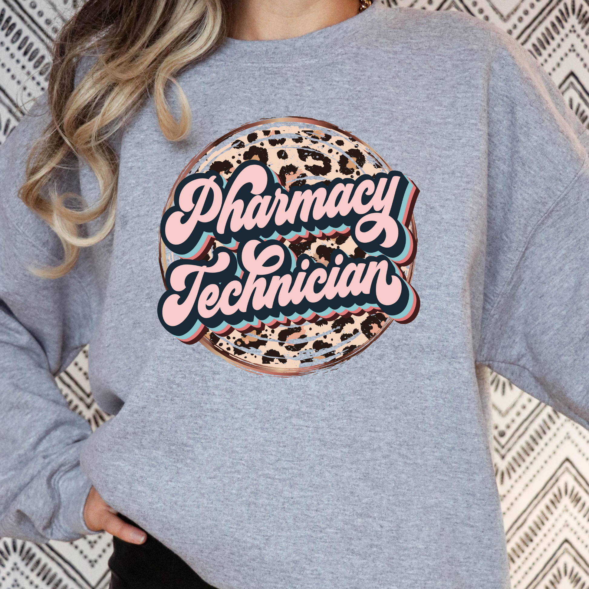 Pharmacy Technician Leopard Circle Full Color DTF Transfer