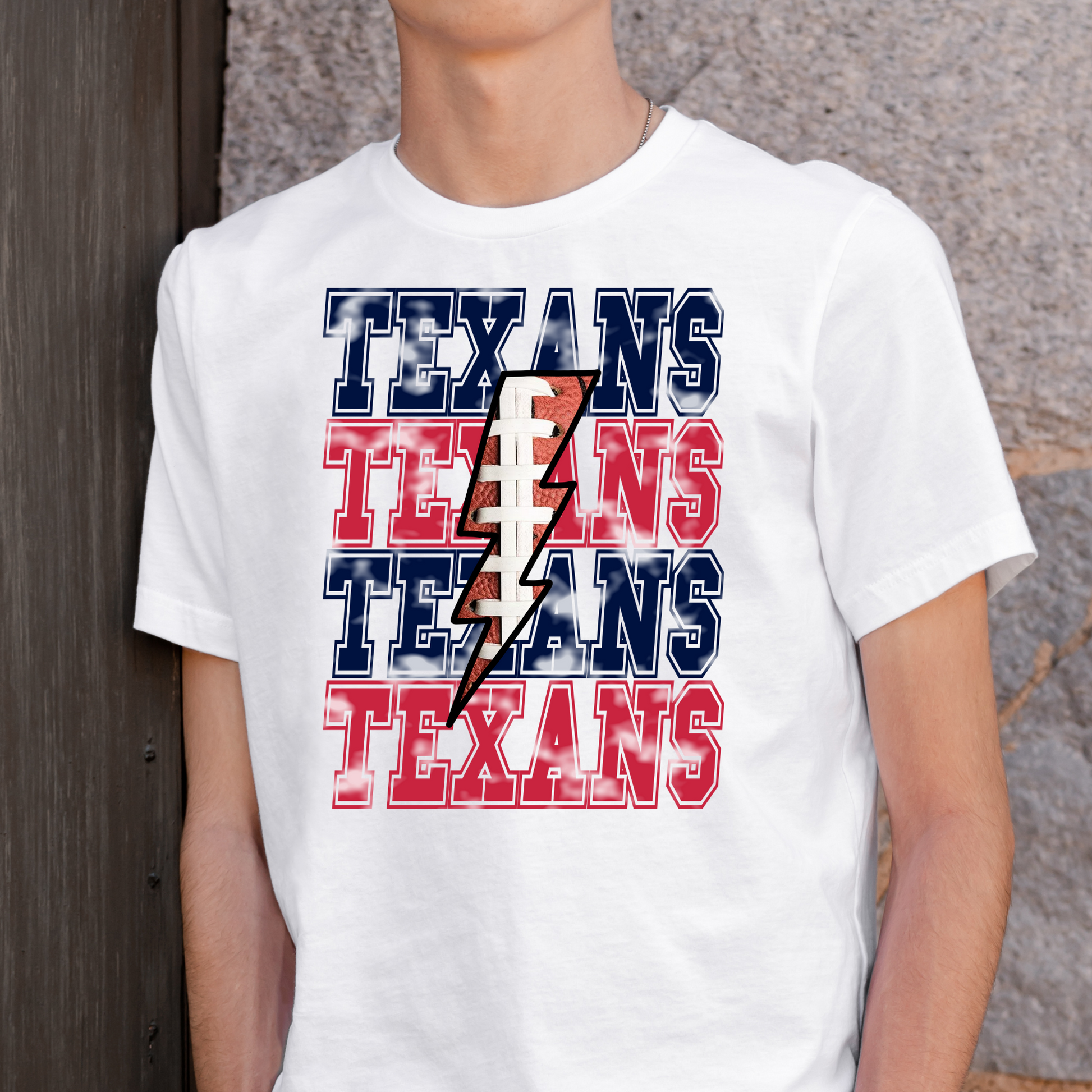 Texans Red/Blue Repeat w/Football Lightning Bolt Full Color DTF Transfer