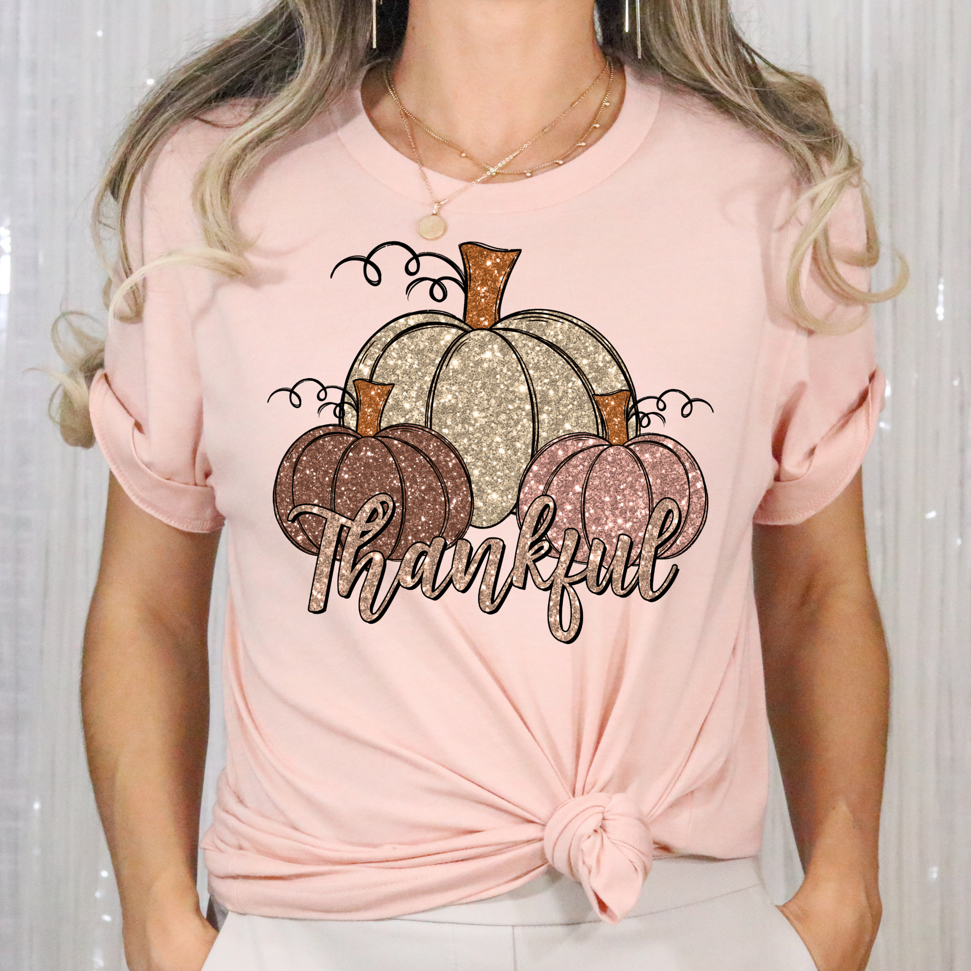 Thankful Glitter Pumpkins Full Color DTF Transfer
