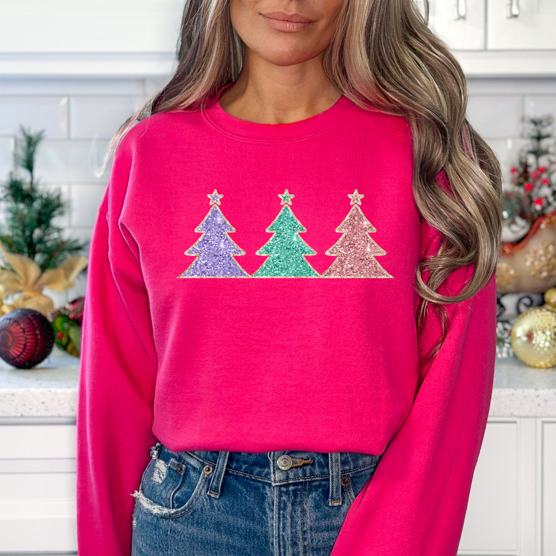 Three Christmas Tree (Faux Chenille and Glitter) Full Color DTF Transfer