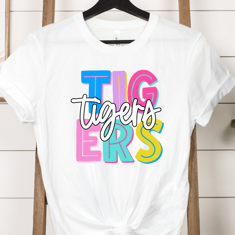 Tigers Mascot Stacked (Bright Colors)Full Color DTF Transfers