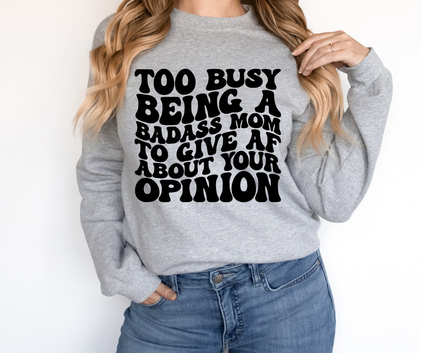 Too Busy Being A Badass Mom To Give AF About Your Opinion Full Color DTF Transfers
