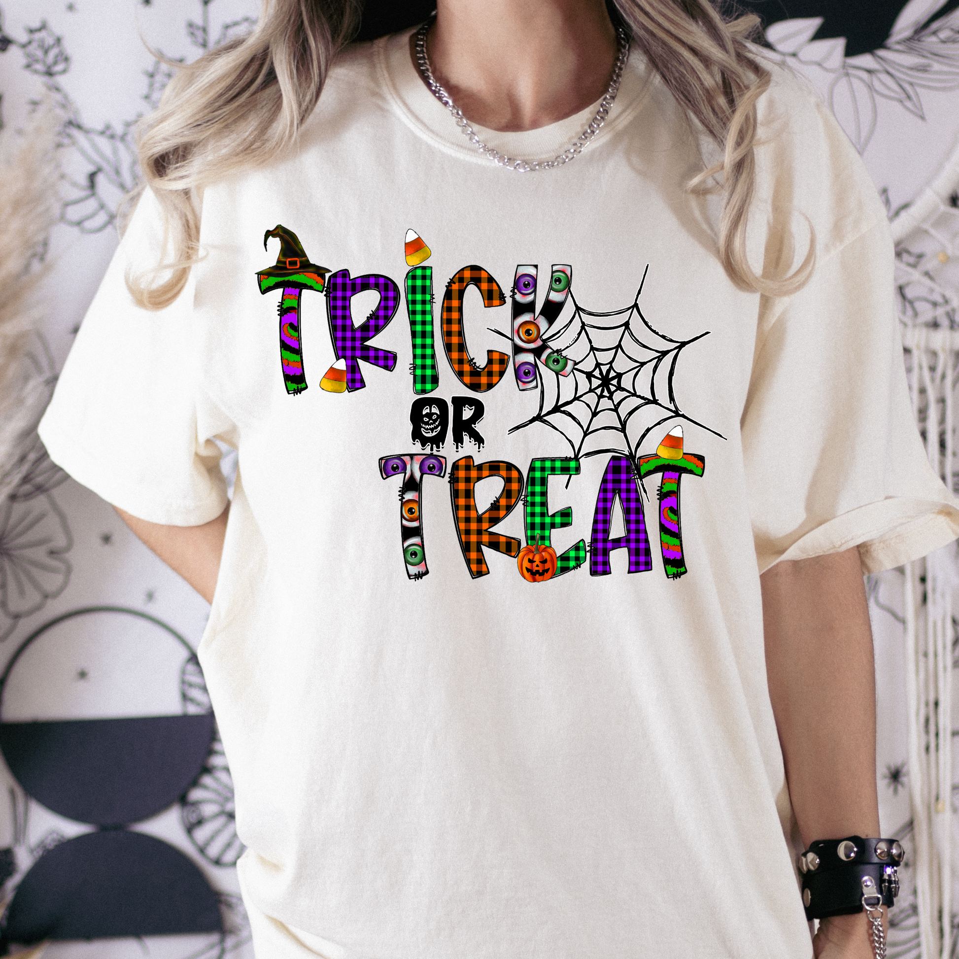 Trick or Treat (Multi Color Letters w/Web) Full Color DTF Transfer
