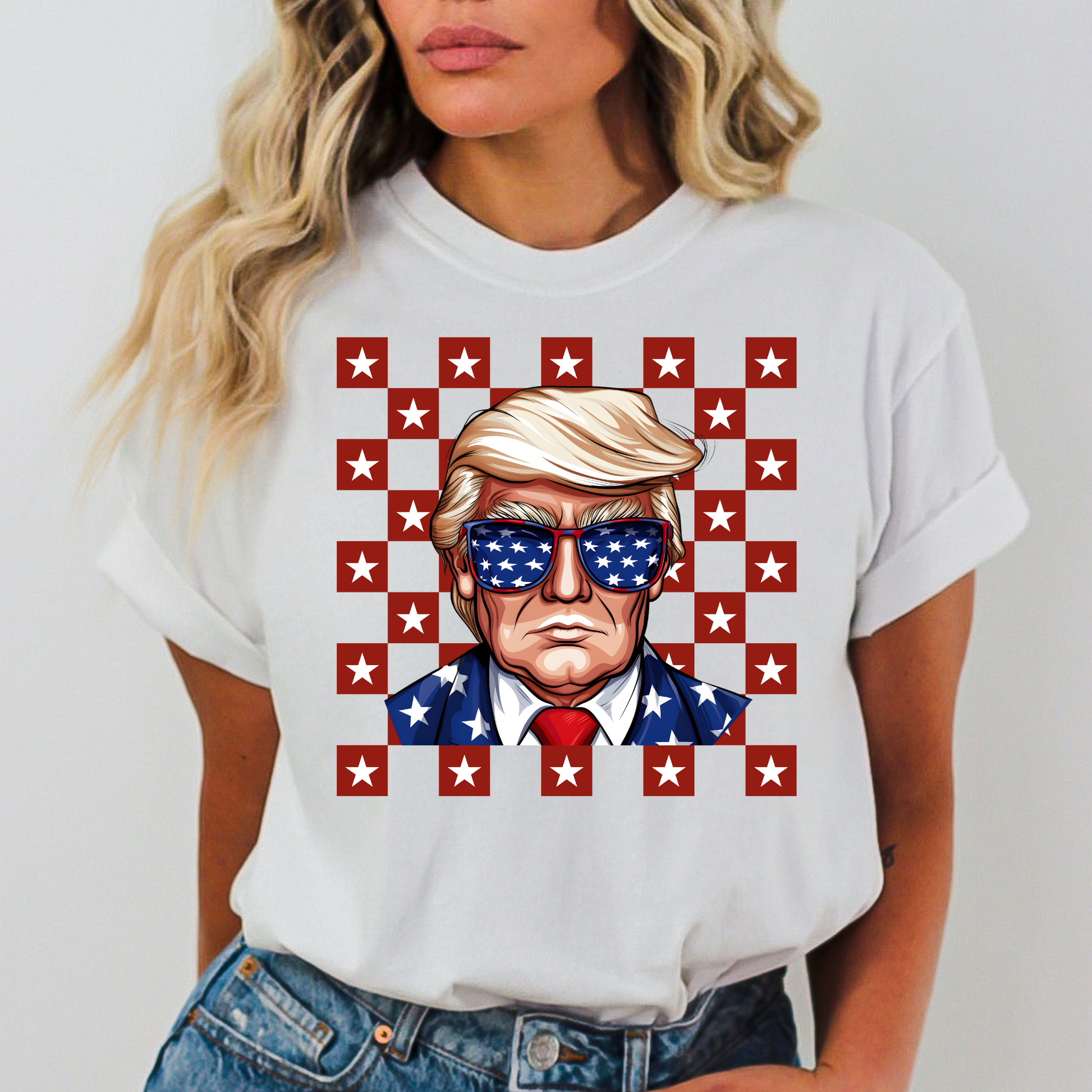 Trump Head w/Checkered Background Full Color DTF Transfer