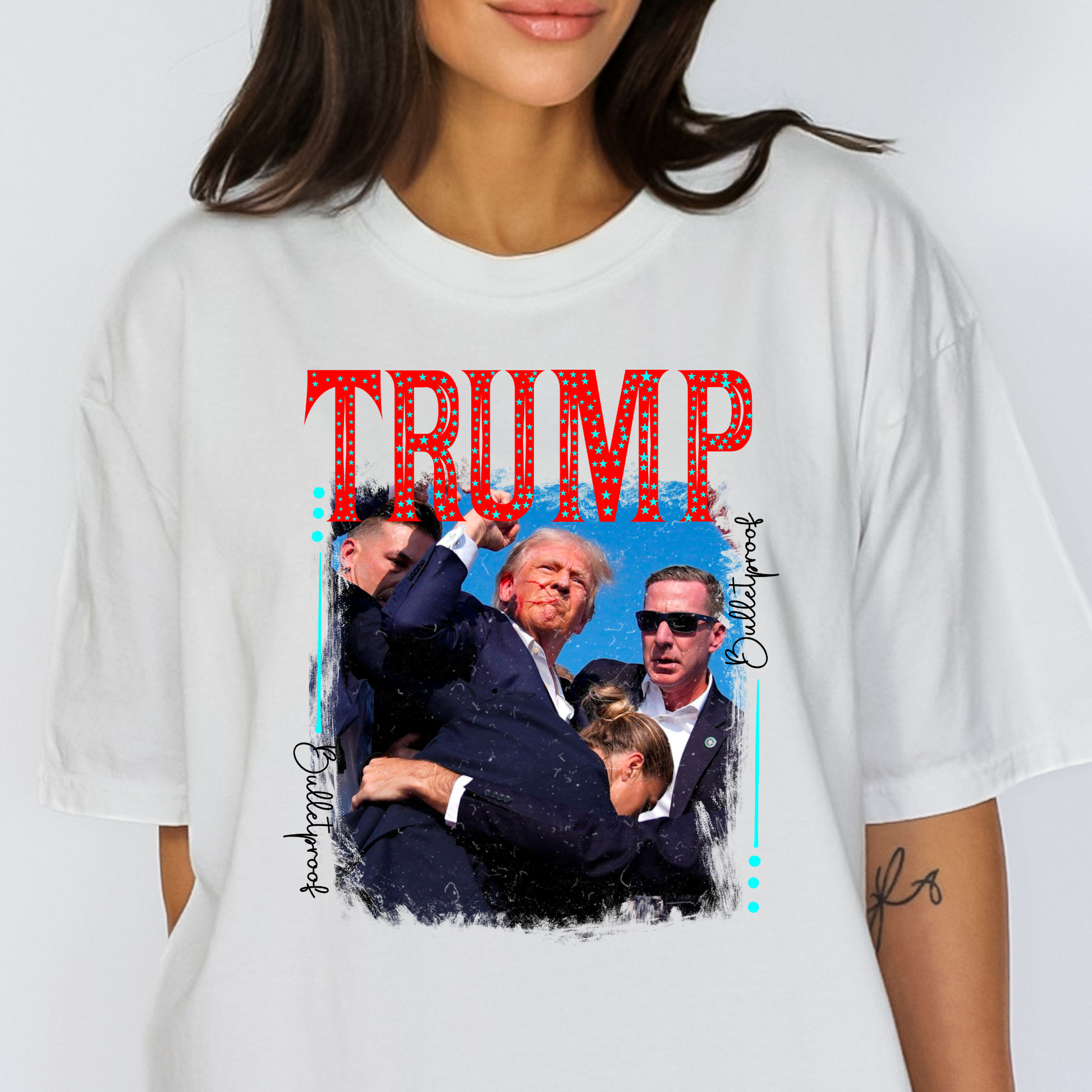Trump (Turquoise Starts) Bulletproof (Assassination Attempt Trump Rally 2024) Full Color DTF Transfer