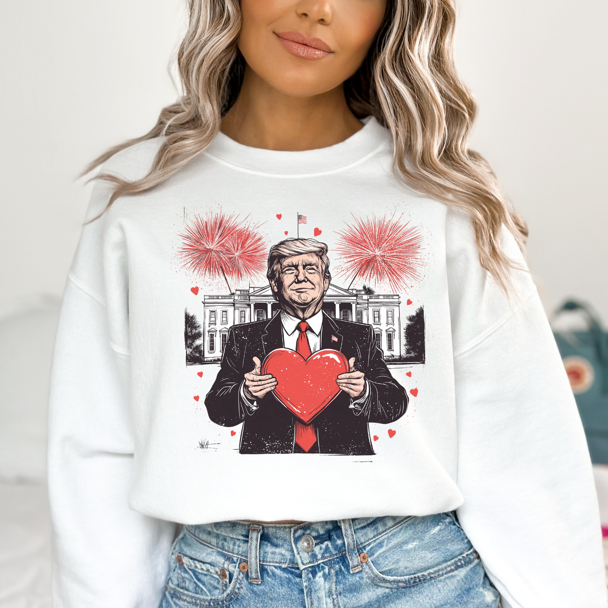 Trump (White House Background) Holding Heart Full Color DTF Transfer