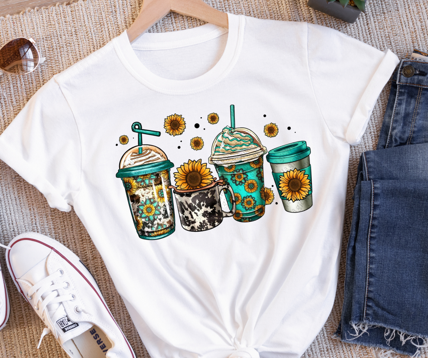 Turquoise and Sunflower Coffee Full Color DTF Transfer