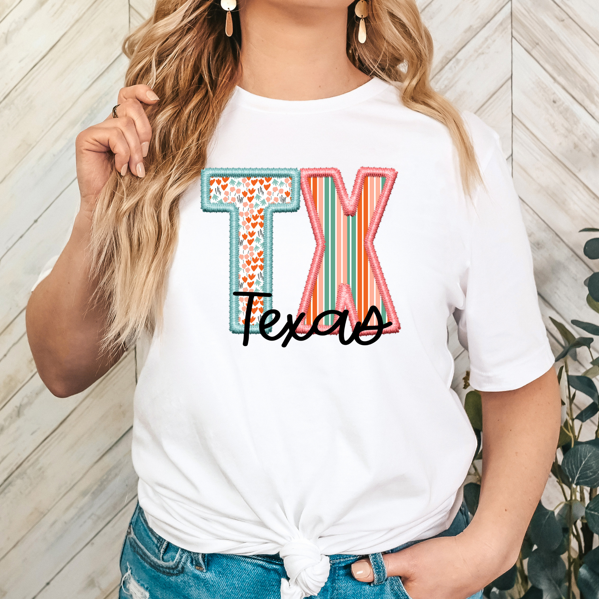 Tx - Texas (Faux Embroidery) Full Color DTF Transfer