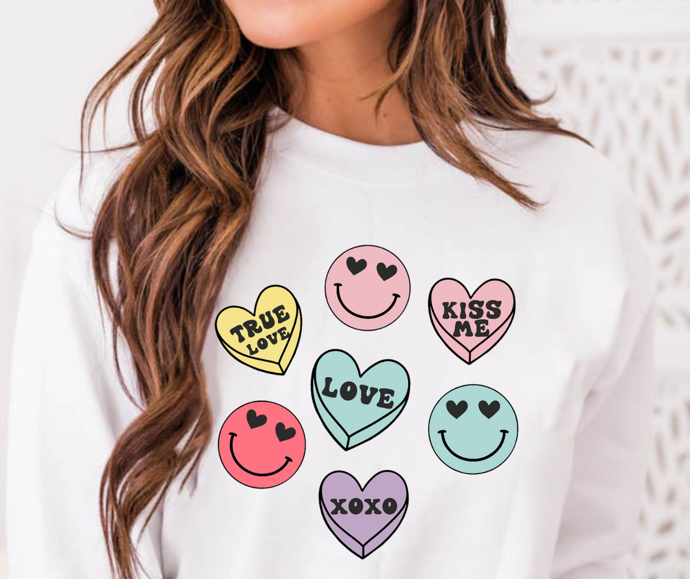 Valentines Candy Hearts & Smiley Face Retro Full Color DTF Transfer