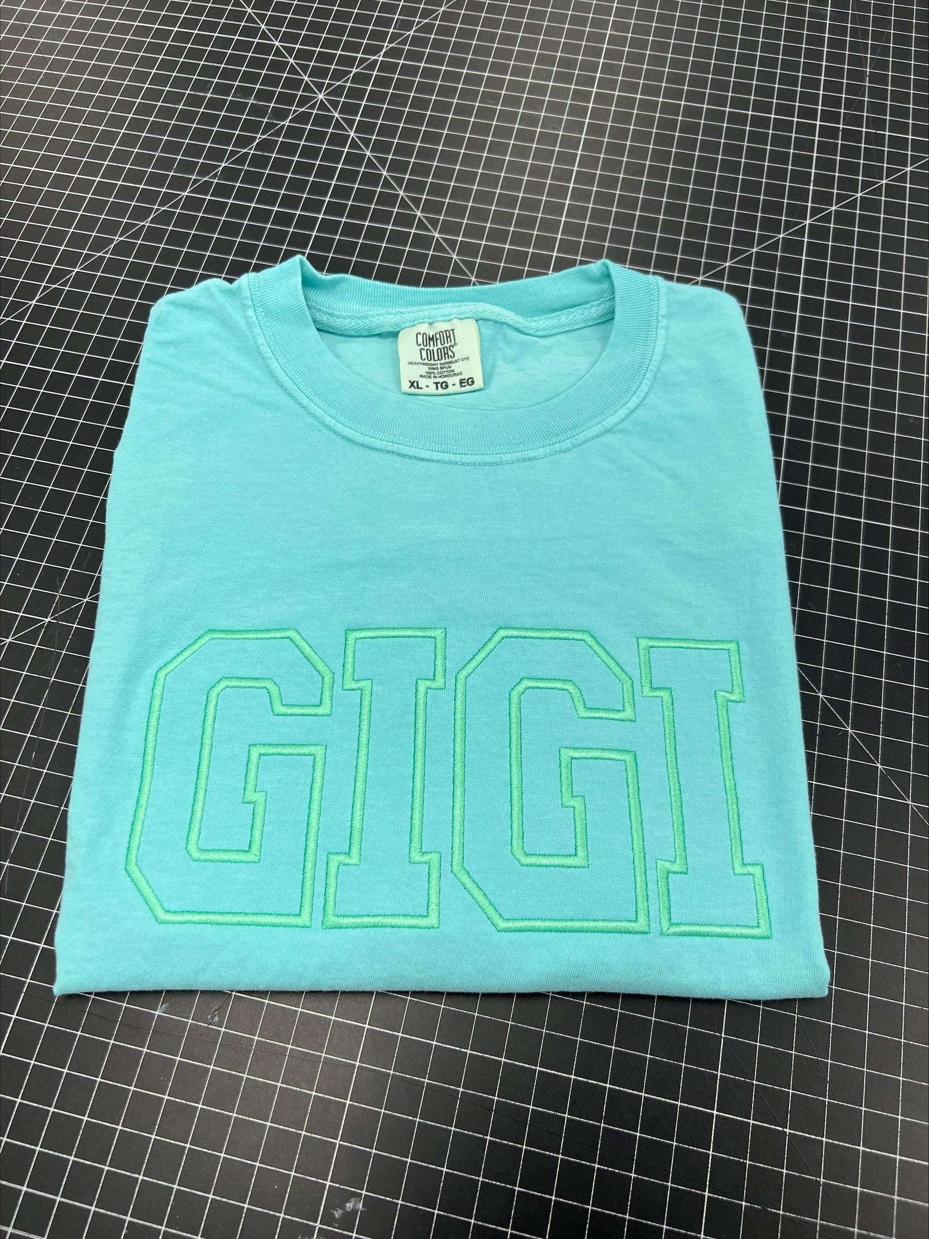 Varsity Outlined Name Embroidered Sweatshirt/T-Shirt
