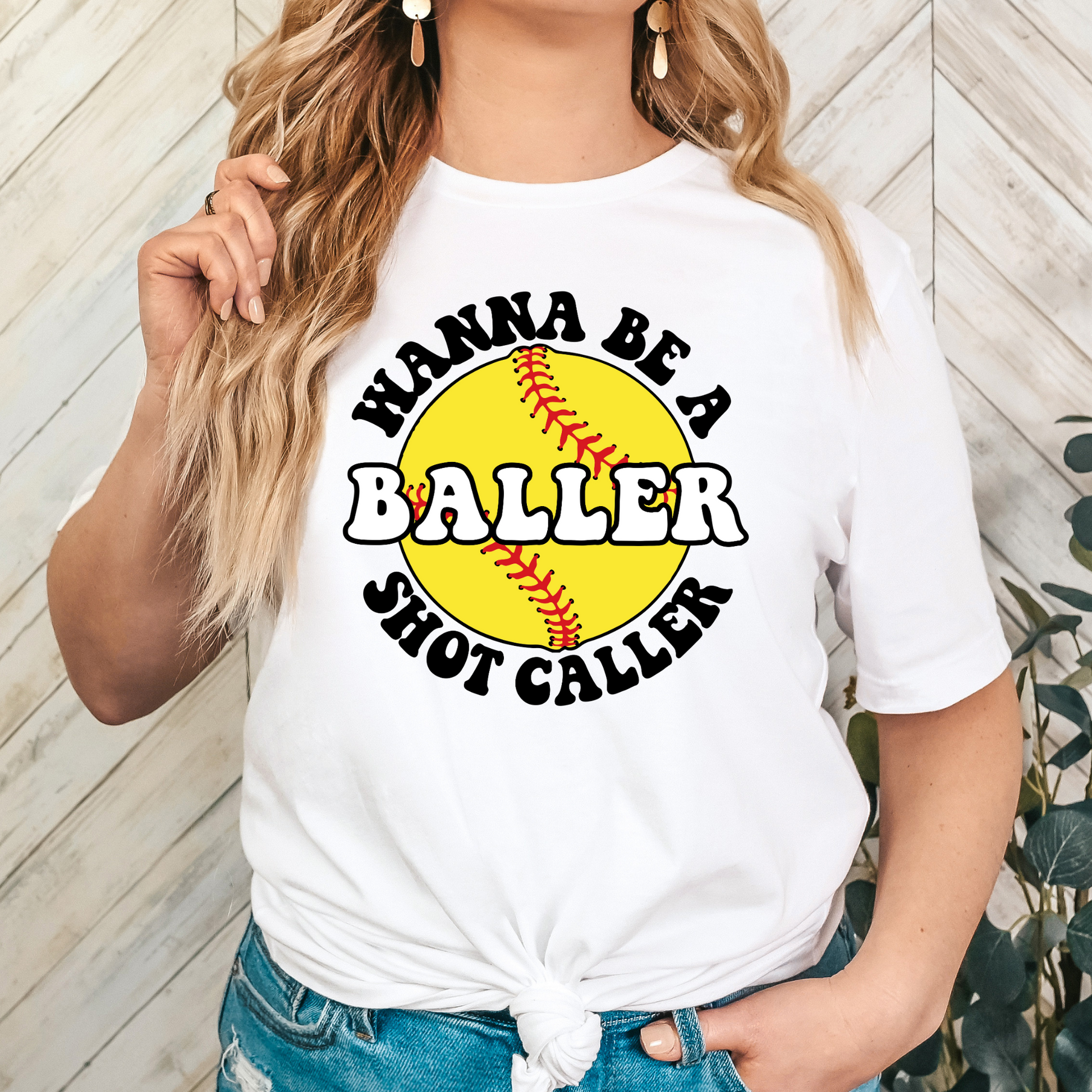 Wanna Be A Baller Shot Caller Softball Full Color DTF Transfer