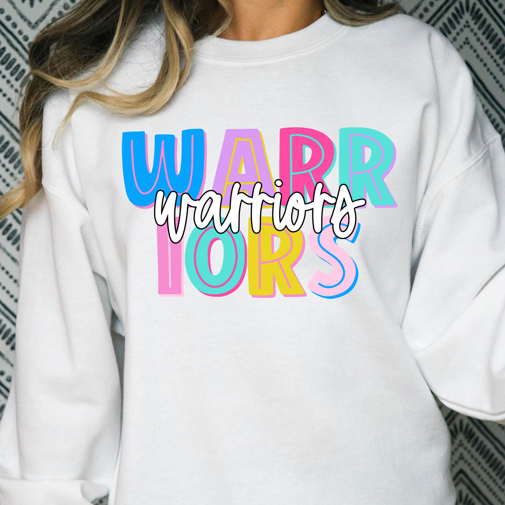 Warriors Mascot Stacked (Bright Colors)Full Color DTF Transfers