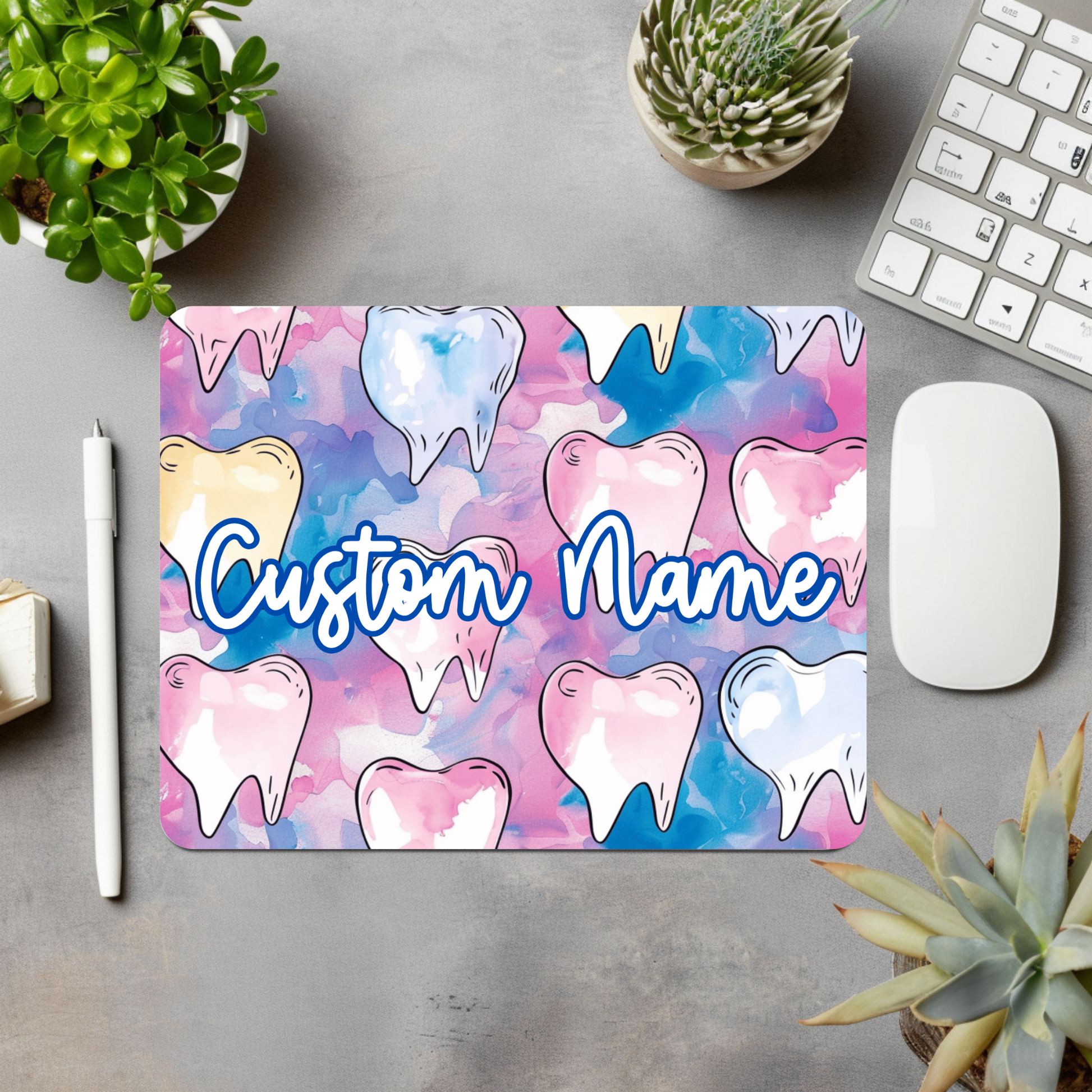 Watercolor Teeth (Dentist) Personalized Mouse Pad