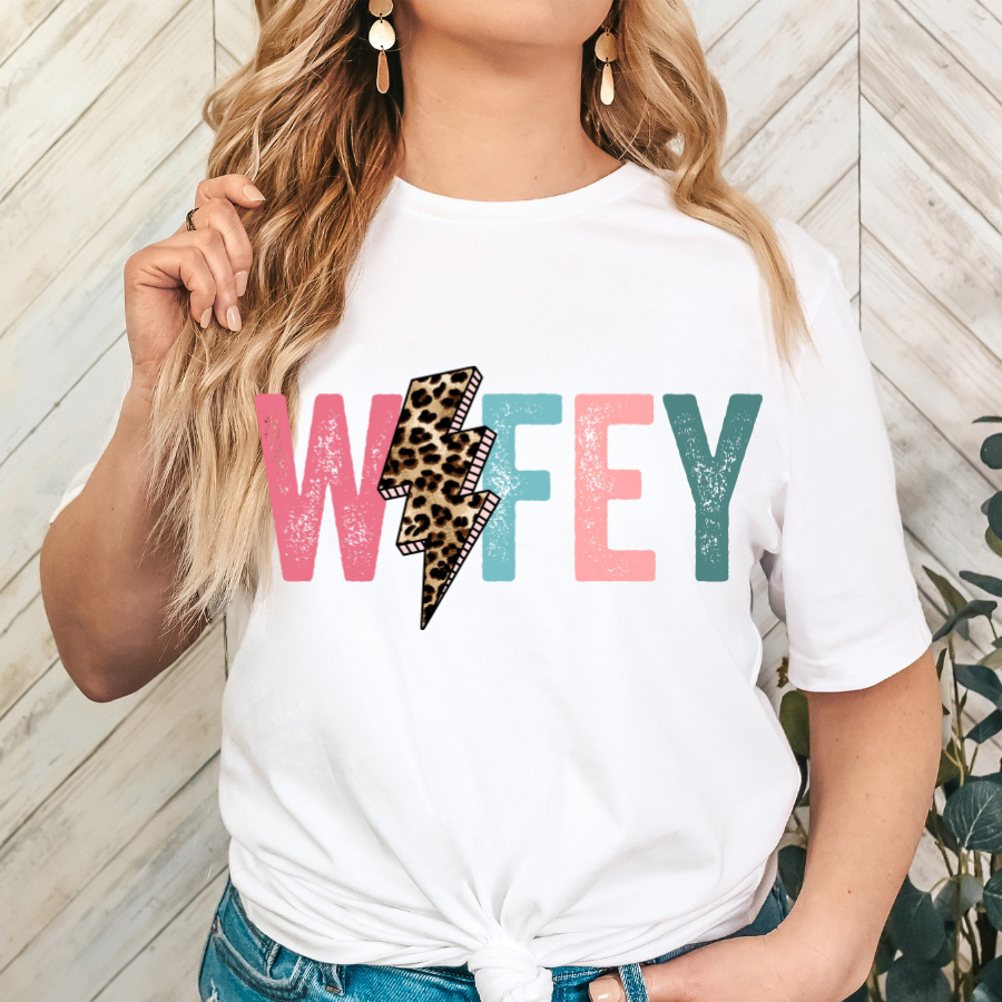 Wifey (Multi Color w/Leopard Lightening Bolt) Full Color DTF Transfers