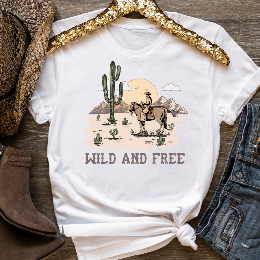 Wild and Free Catcus and Horse Full Color DTF Transfers